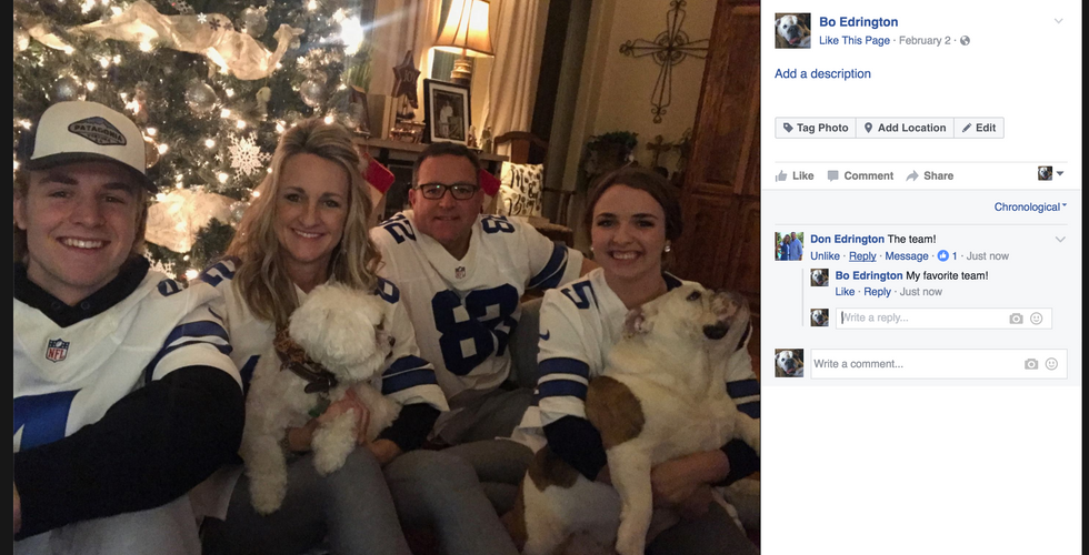 4. Facebook Group: Cowboy's Fan Group. I think due to our family's love for the Dallas Cowboys, our dogs have inherited a love for the Dallas Cowboys. Bo actually watches the games, so I am going to go out on a limb and assume Facebook him would be an active participant in their fan club.
